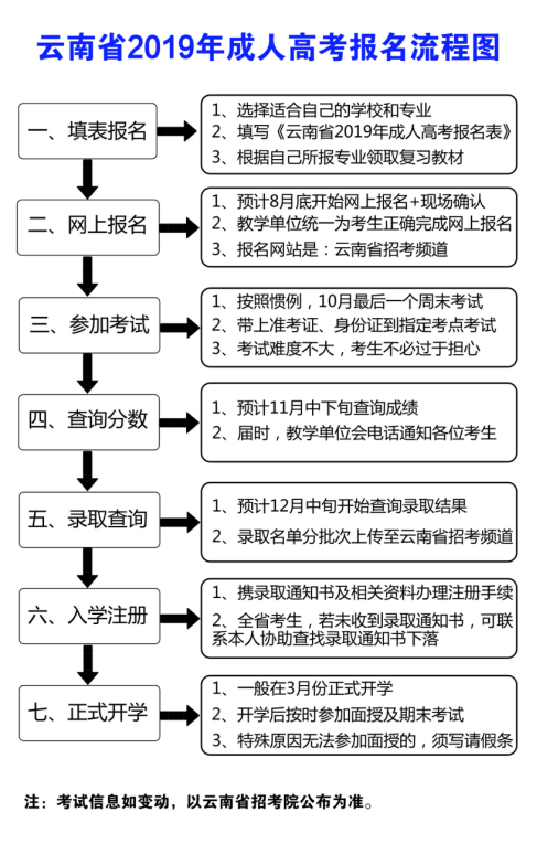 所在位置:云南成考網 > 云南成考指南 > 云南省2019年成人高考報名流程