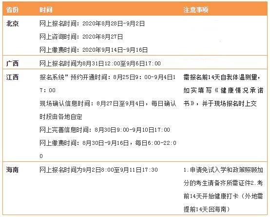 【導(dǎo)讀】成考每年一次,近些天,成考已經(jīng)進(jìn)入火熱報名時期,江西的小伙伴已經(jīng)在網(wǎng)上申請了報名預(yù)約單,到報名點(diǎn)進(jìn)行現(xiàn)場確認(rèn),下面云南成考網(wǎng)為大家整理了多地公布2020成考報名時間!